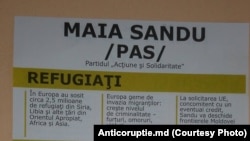 Concomitent, presupusa promisiune atribuita Maiei Sandu a fost invocata în materialele electorale difuzate de PSRM, unele nesemnate. „Europa geme de invazia migranţilor, creşte nivelul de criminalitate – furturi, omoruri, violuri”, se spune în unul dintre pliantele difuzate în oraş sau pe la casele oamenilor.